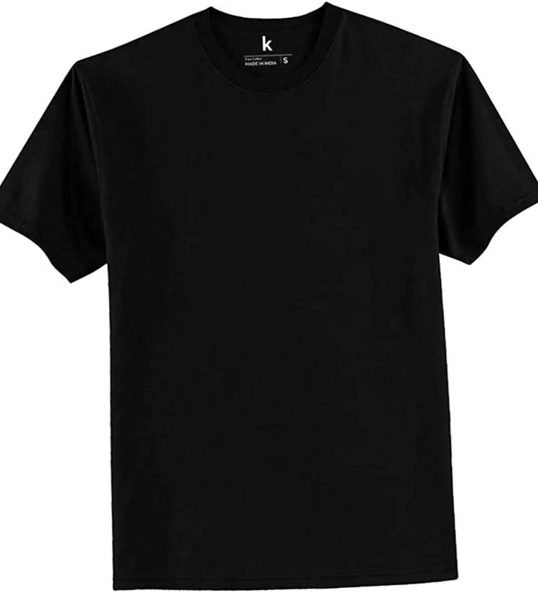 Men Solid Round Neck Cotton Blend Black T-Shirt