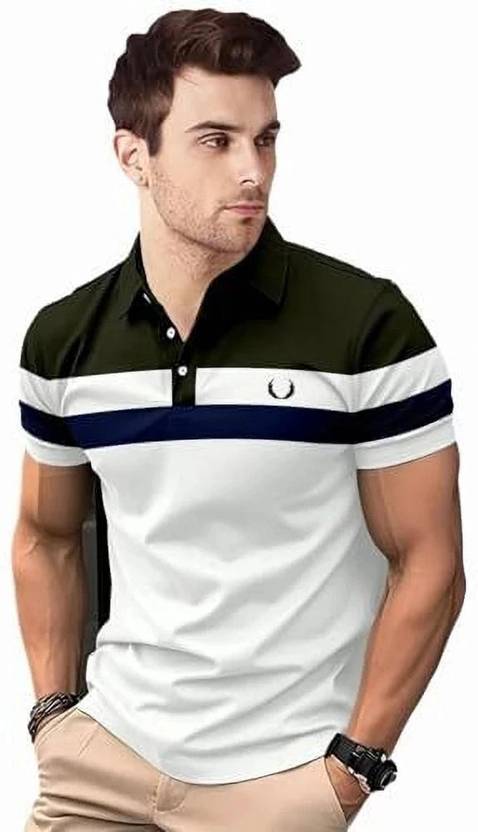Garimaknitwear Colorblock Men Polo Neck Green, Black T-Shirt
