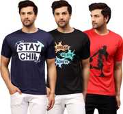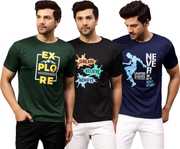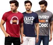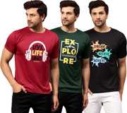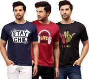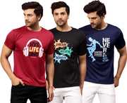 Upgrade your wardrobe with this combo of 3 Dri-Fit printed round neck t-shirts for men. Designed for maximum comfort, these t-shirts feature moisture-wicking fabric to keep you cool and dry throughout the day. Ideal for workouts, casual outings, or lounging, they offer a stylish fit with vibrant prints. Stay active and trendy with these durable, easy-care tees.