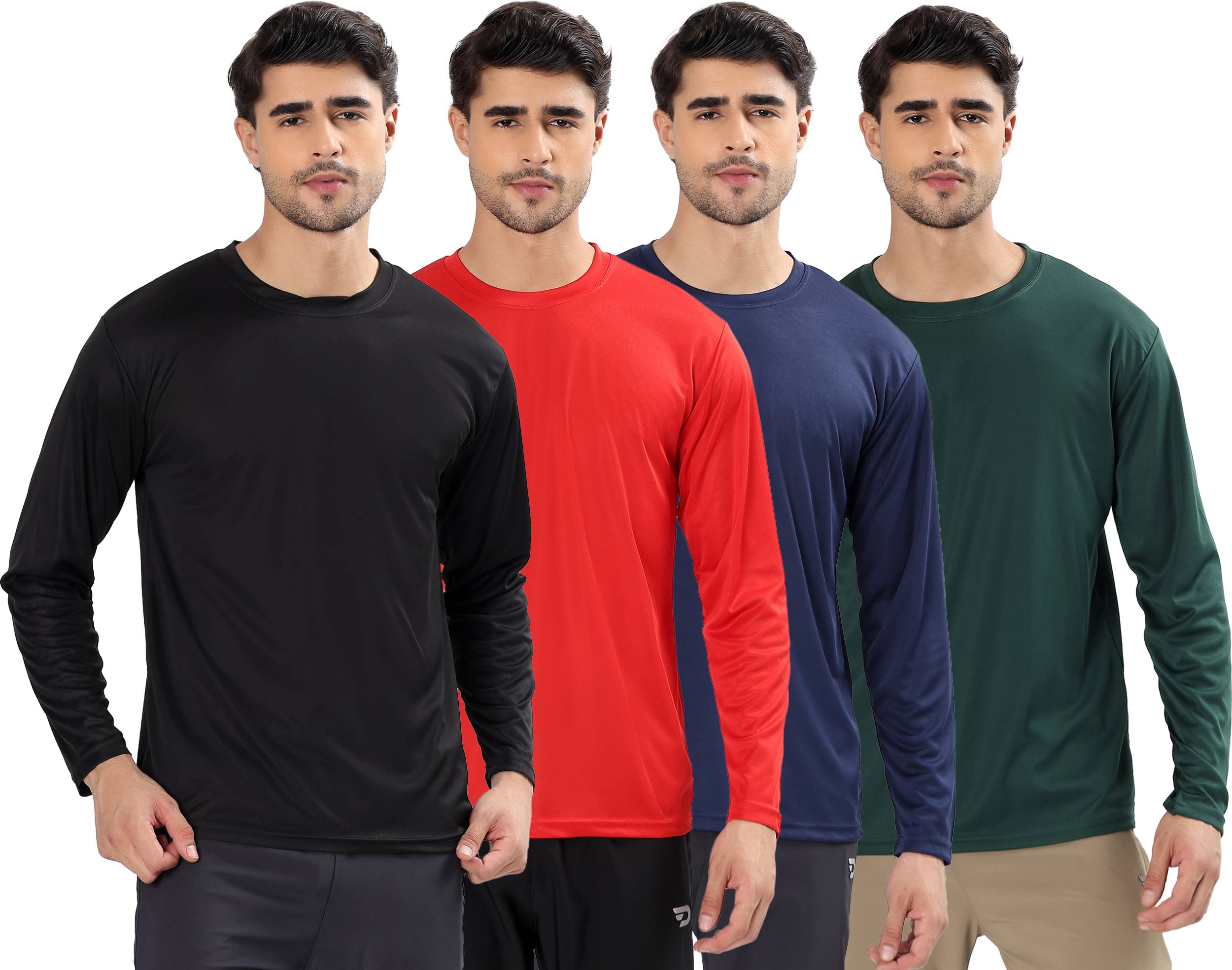 Get this Pack of 4 Men’s Full Sleeve Dri-Fit Solid Round Neck T-Shirt Combo, perfect for daily wear, gym, running, sports, office, and casual outings. Made with soft, stretchable, quick-dry Dri-Fit fabric, these full sleeve tees keep you cool, comfortable, and sweat-free all day. The solid colours, stylish fit, premium stitching, and lightweight fabric make this combo ideal for men looking for affordable, trendy, and comfortable full sleeve T-shirts. Best for gym wear, sportswear, travelling, college wear, and everyday fashion. A must-have value combo for all-season use.