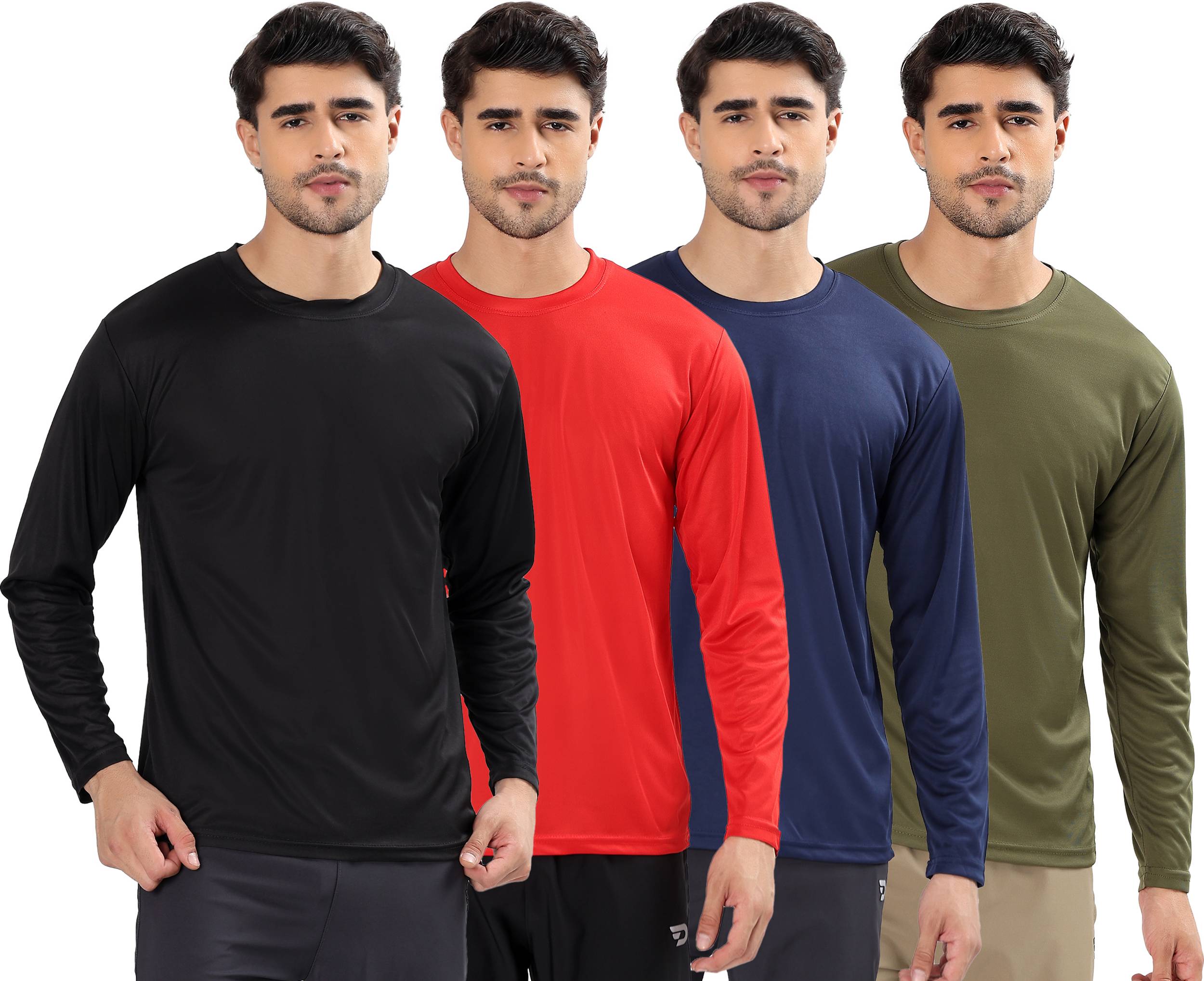 Get this Pack of 4 Men’s Full Sleeve Dri-Fit Solid Round Neck T-Shirt Combo, perfect for daily wear, gym, running, sports, office, and casual outings. Made with soft, stretchable, quick-dry Dri-Fit fabric, these full sleeve tees keep you cool, comfortable, and sweat-free all day. The solid colours, stylish fit, premium stitching, and lightweight fabric make this combo ideal for men looking for affordable, trendy, and comfortable full sleeve T-shirts. Best for gym wear, sportswear, travelling, college wear, and everyday fashion. A must-have value combo for all-season use.