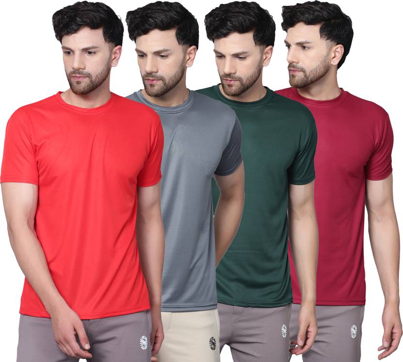 Garmin Pack of 4 Men Solid Round Neck Polyester Multicolor T-Shirt