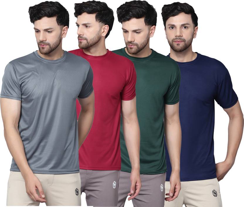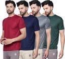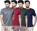 Garmin Pack of 4 Men Solid Round Neck Polyester Multicolor T-Shirt