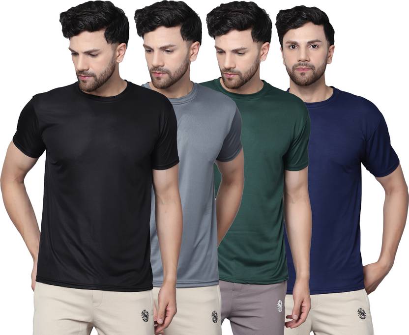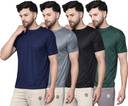 Garmin Pack of 4 Men Solid Round Neck Polyester Multicolor T-Shirt