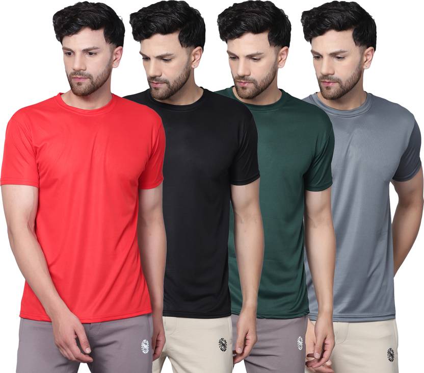 GarminΒ Pack of 4 Men Solid Round Neck Polyester Multicolor T-Shirt