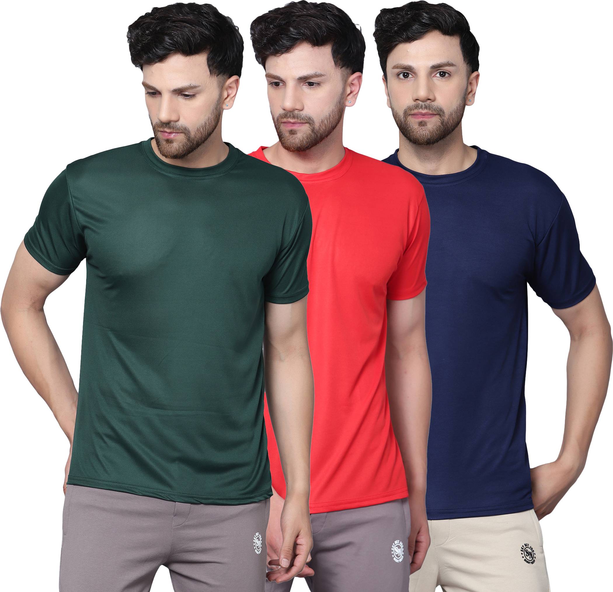Garmin Pack of 3 Men Solid Round Neck Polyester Multicolor T-Shirt