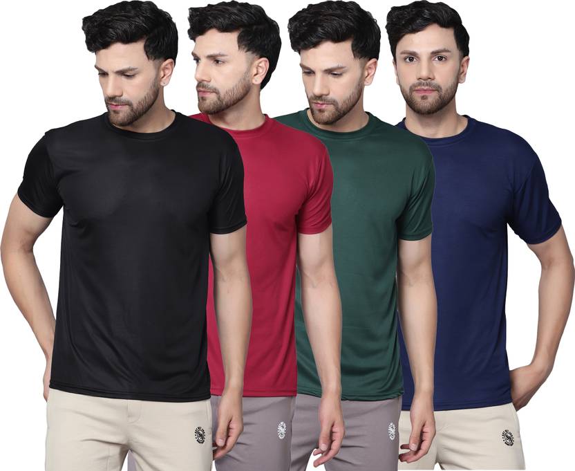 Garmin Pack of 4 Men Solid Round Neck Polyester Multicolor T-Shirt
