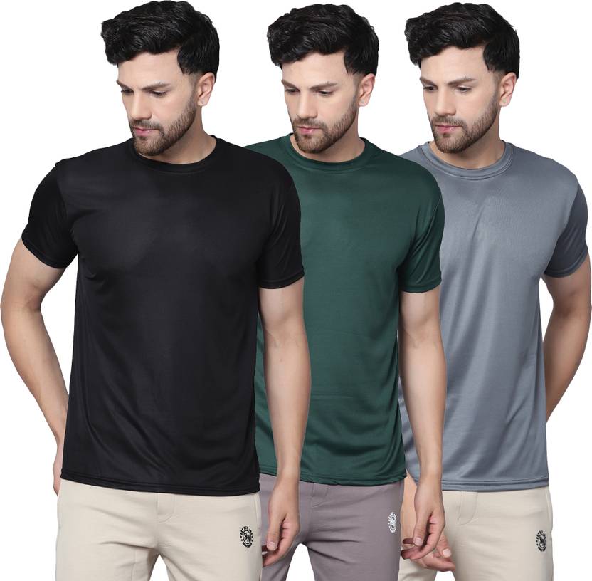 GarminΒ Pack of 3 Men Solid Round Neck Polyester Multicolor T-Shirt