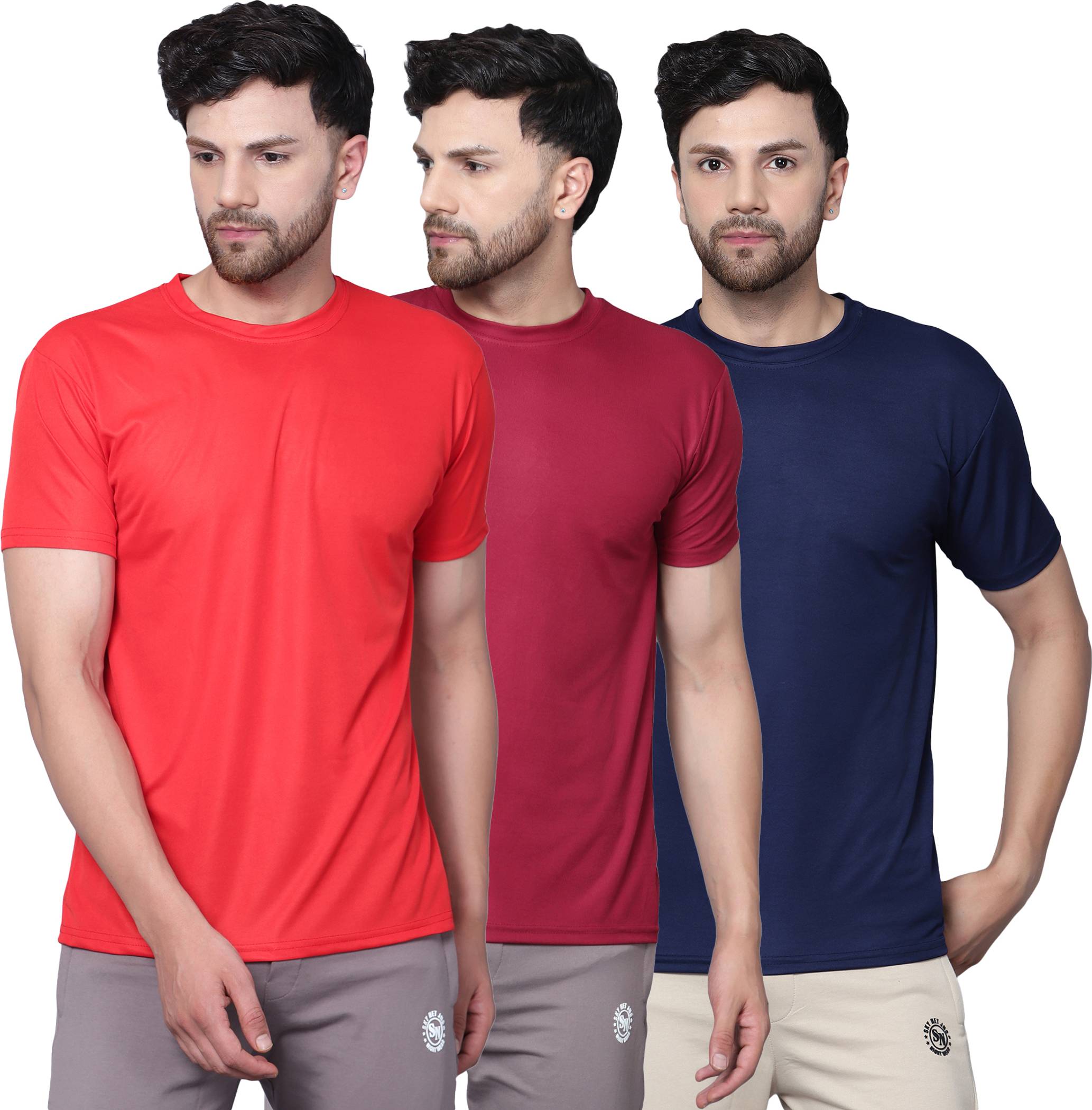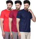 Pack of 3 Men Solid Round Neck Polyester Multicolor T-Shirt