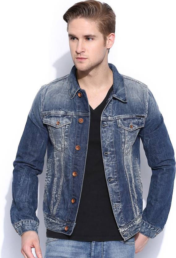 Blue panelled heavily washed denim jacket, has a spread collar, a full button placket on the front, long sleeves with button cuffs, two lightly distressed patch pockets on the front with a button and flap closure, two mock insert pockets on the front, branding above the left pocket, a yoke on the back, a panelled hem, a tab and button closure on the back hem on either side. GAS presents its latest range of jackets that is super-stylish and extremely comfortable. We suggest you layer this piece over a tee or shirt, tag along your favourite jeans or cargos for a cool look.