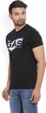 Men Printed Round Neck Cotton Blend Black T-Shirt