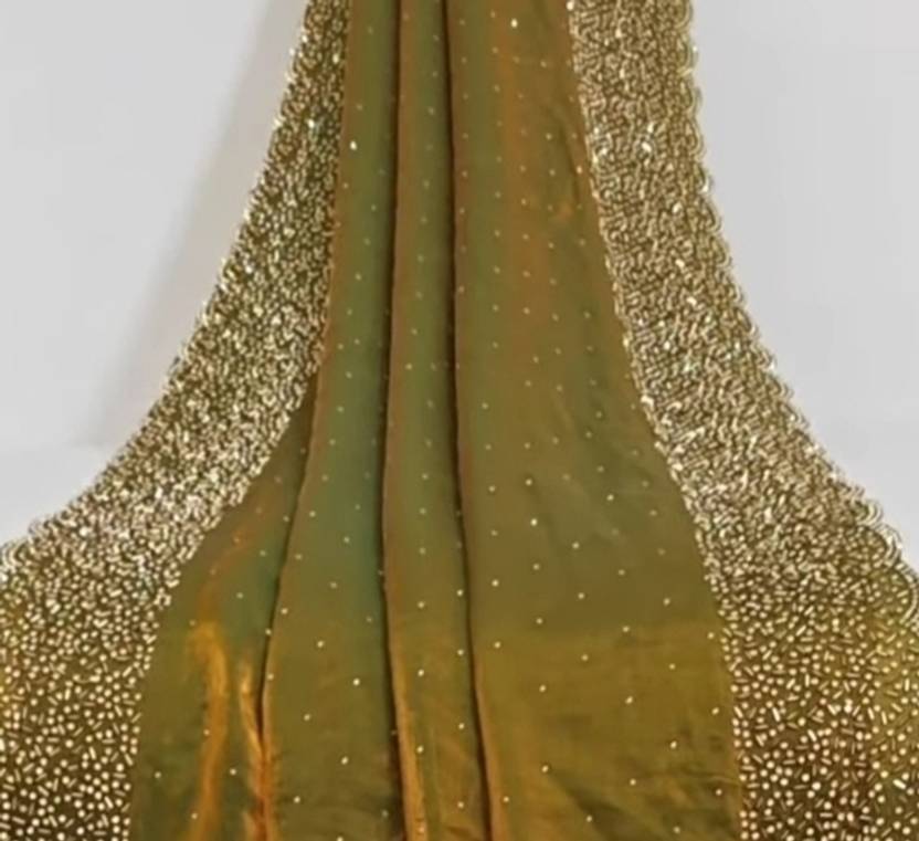 Fendy chiffon soft material,Primium Stylish beutiful look,jarkan daimond and cutdana work,hand made,saree