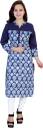 Women Printed Cotton Blend Straight Kurta (Dark Blue)