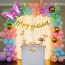 Complete decor kit including arch tape, ribbon, hooks, glue dots, and a Happy Birthday banner for easy setup.
