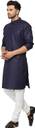 Men Solid Cotton Blend Straight Kurta (Dark Blue)