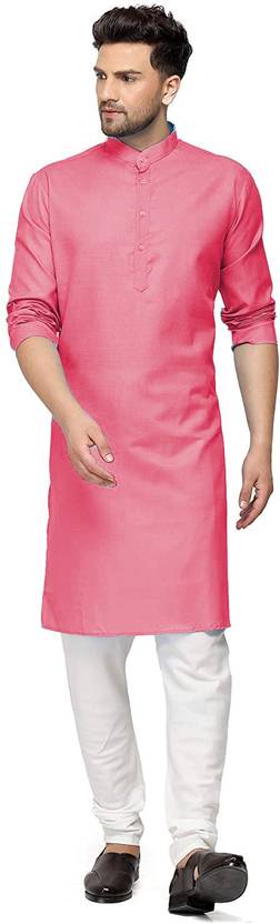 GauriLaxmi Enterprise Men Solid Straight Kurta (Pink)