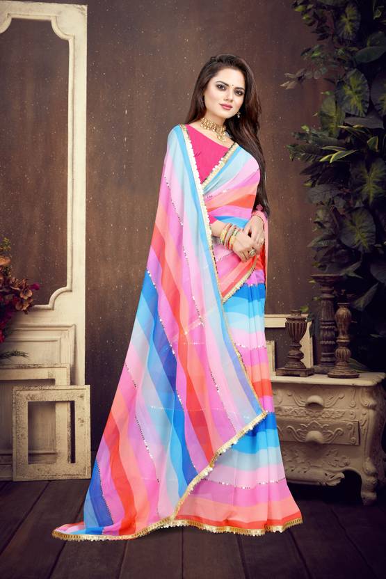 GAVUBAA Solid/Plain Bollywood Georgette Saree (Multicolor)