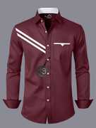 Featuring a solid base highlighted with subtle striped detailing, this menβs shirt offers a design that balances clarity with character. The solid backdrop provides a structured and grounded appearance, while the striped accents add rhythm and depth to the overall look. This combination of elements ensures the pattern remains distinct yet understated, lending this shirt a refined finish suitable for varied occasions.