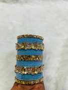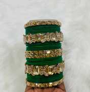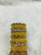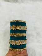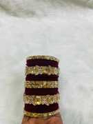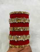 Add a royal touch to your traditional look with this Metal Velvet Bangle Set, beautifully crafted with premium velvet wrapping and sparkling stone studded kadas. The vibrant red color paired with golden crystal embellishments gives a luxurious bridal feel, perfect for wedding ceremonies, haldi–mehndi events, festivals, and special occasions. Designed with durable metal base and soft velvet texture, these bangles offer comfort, shine, and long-lasting beauty. This complete set enhances both ethnic and Indo-western outfits effortlessly.