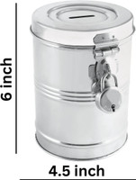 gbsmart Stainless Steel Round Shape Gullak Bank with Lock Cash Box (1 Compartments)