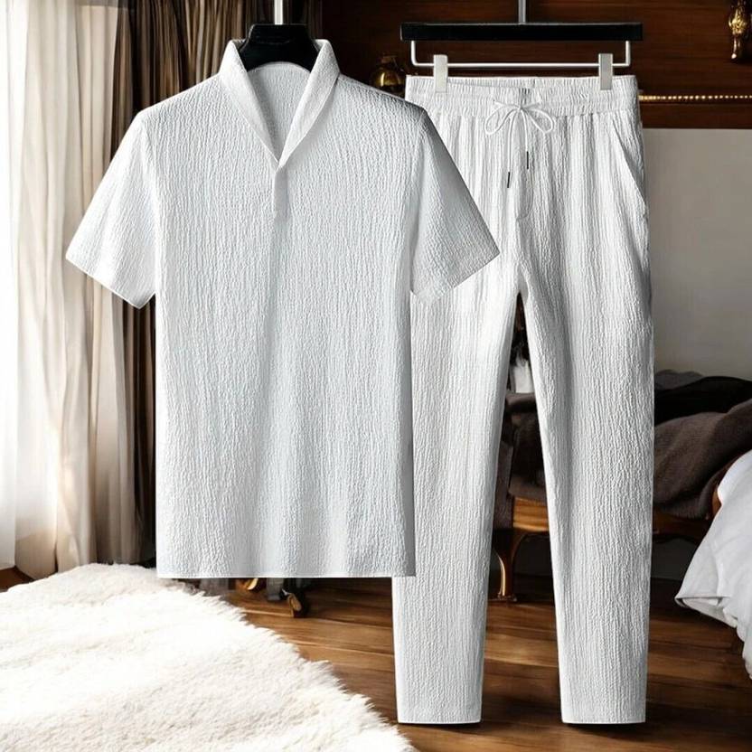 Boasting a unique textured pattern, this men's tracksuit adds subtle detail to your casual attire. The patterned set creates visual interest without overwhelming the overall look. In addition, the texture enhances the appearance of the fabric.