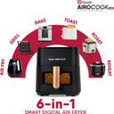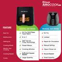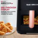 | Other Features | - Geek AIroCook Zora Air Fryer 5 Litre is your one-stop kitchen companion, allowing you to Air Fry, Roast, Bake, Toast, Grill, Reheat, Broil, Make Pizza, and Defrost - all in one sleek appliance., Enjoy all your favorite meals with up to 85% less fat compared to traditional frying methods. This air fryer lets you savor crispy fries, tender and juicy chicken, perfectly grilled fish, and more – all guilt-free!, The Zora Digital Air Fryer simplifies cooking with 8 pre-programmed settings. Just choose your desired dish - Fries, Chicken, Fish, Prawn, Cake, Pizza, Roast, or Grill - and let the Zora handle the rest., The Zora Air-fryer transparent window and built-in light let you watch your food cook to perfection without opening the fryer basket. This ensures perfectly cooked results every time., Experience the power of 360° Swirl Hot Air (SHA) Technology. This innovative air-fryer system locks in crunchiness, fluffiness, and crispiness for evenly cooked food from all angles.