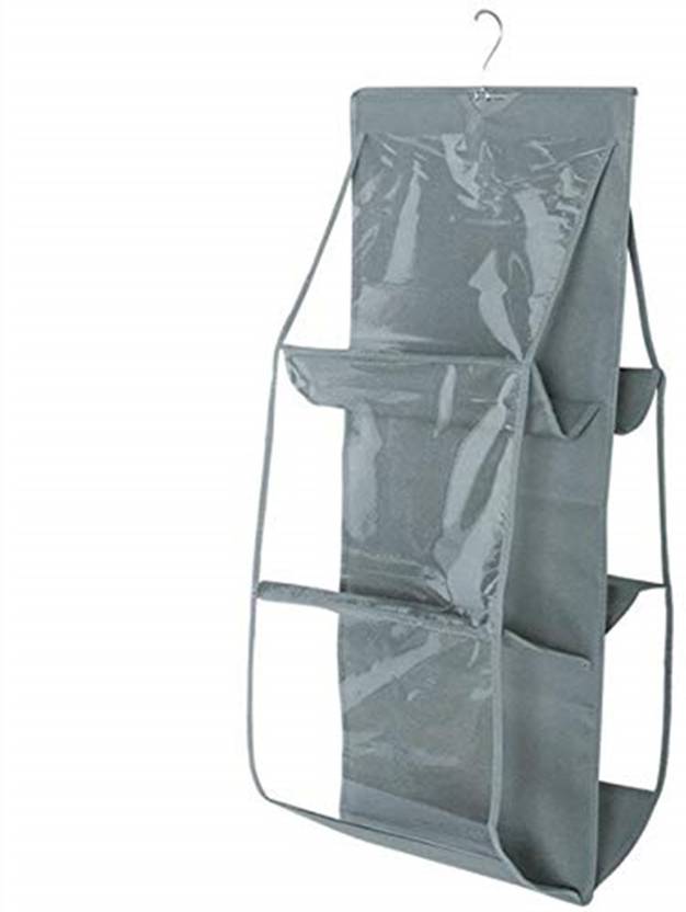 Geeta Creation brings to you a Stylish Hanging Handbag Organizer or Purse Storage Holder for your convenience. It is made up of Moisture Proof, Good Quality, Non-Woven Fabric with Super Premium Clear Transparent Sheet and Metal Hook which prevent Mildewing and Moisture. Dense sewing thread makes sure the holder more sturdy for long time use. This hanging handbag organizer can hold 6 Bags. The double side design and Transparent Film make your storage more convenient. It makes easy to view and select the right bag for any occasion. Perfect organizing solution for your Purses, Shoulder Bags, Handbags, Small Blankets, Sheets, Towels, Pocketbook, Clutches and other Stuffs etc. It can be hooked behind the Door, Suitable in Bedrooms, Living Rooms, Hallway or Linen Cupboards, Wardrobe. It does not occupy your space, convenient to carry and keep. It can be Conveniently fold for easy storage when not in use.