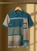 Offering a distinctive blend of geometric and checkered prints, this men’s T-shirt creates a modern and stylish look. The bold graphic details add character to its overall appearance, making it a statement piece for any wardrobe. Additionally, the thoughtful pattern arrangement enhances the appeal of this T-shirt, ensuring it remains fashionable.