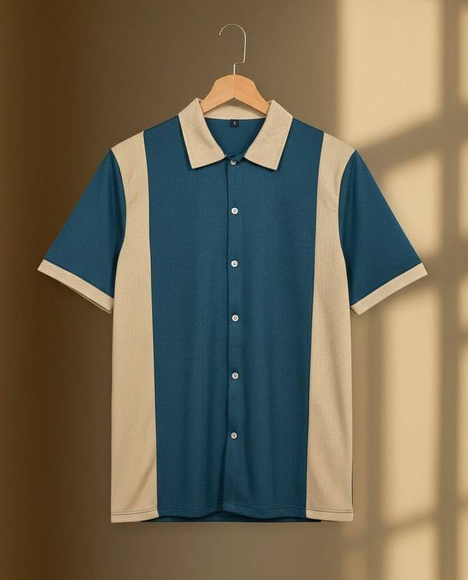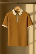 Step up your casual style with this Textured Fabric Contrast Panel Polo Shirt for Men. Made from a premium cotton-blend textured fabric, this polo shirt is soft, breathable, and designed for all-day comfort. The dual-tone design in white and mustard brown creates a bold, modern look, while the button-down front closure adds a touch of smart-casual sophistication.