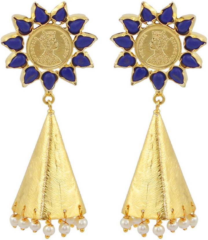Gehnamart Ethinic Star Blue Quartz Alloy Jhumki Earring