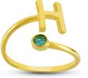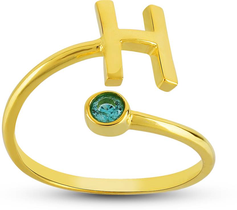 925 Sterling Silver H-Alphabet Design Gold Plating With CZ Stone Ring