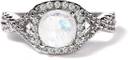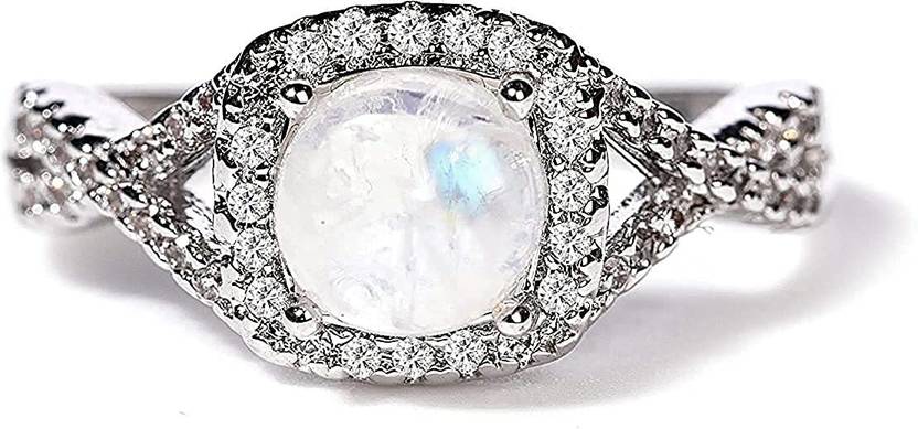 Gempro Natural Moonstone Platinum Plated Ring for Women(Size US 7) Crystal Moonstone Platinum Plated Ring
