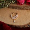 Adorned with marquise stones, this nose ring offers a touch of glamour and sparkle. The stones are intricately set, providing a dazzling effect that catches the light beautifully. The marquise cut enhances the brilliance and adds a unique flair to the design. These sparkling stones elevate the nose ring, making it a great accessory for special occasions and adding a hint of luxury to your everyday style.