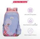 Flaunt your feminine charm with the Genie Juliet School Backpack in lavender floral prints. This 19-inch, 36-litre bag combines style and utility with three roomy compartments, a file holder, and a bottle holder to keep essentials organized. The beautiful floral design adds elegance, while the included Happy Pouch ensures small items are always within reach, making it a fashionable and functional school companion.