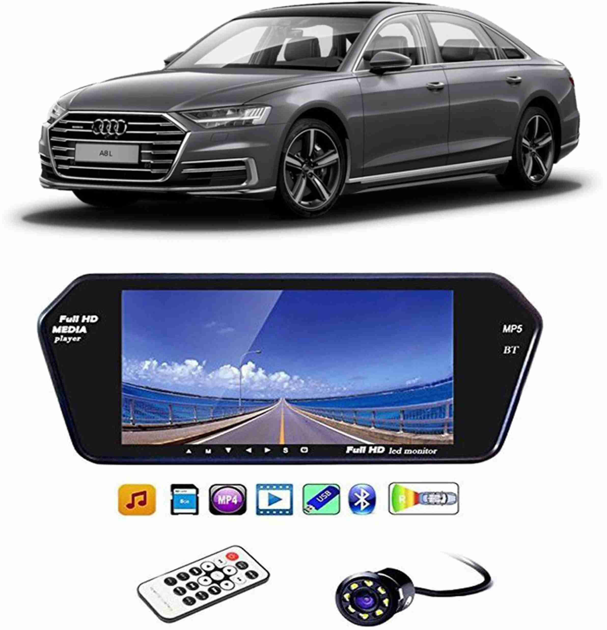 7Inch Full HD LED Screen with Bluetooth and Touch Panel+8 LED Reverse Camera G10 Reverse Assist Camera System (1 Camera,...