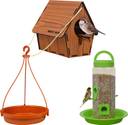 GENIYO Wooden Bird Nest Bird Seed Container And Water Feeder For Sparrow, Hummingbird Window Bird Feeder Bird Feeder (Brown, Green, Orange)