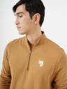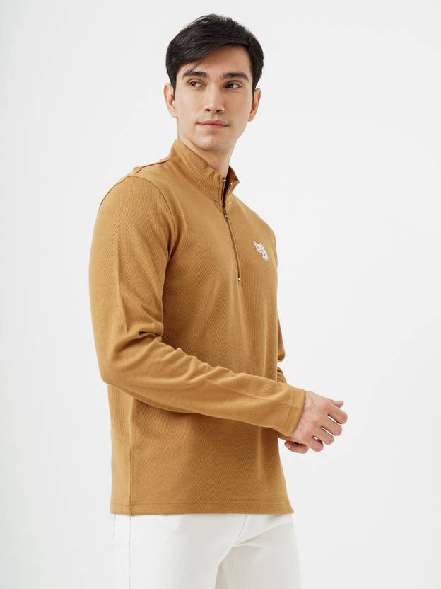 GENOA Men Printed Turtle Neck Pure Cotton Beige T-Shirt
