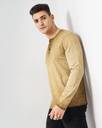 GENOA Men Self Design Henley Neck Pure Cotton Green T-Shirt