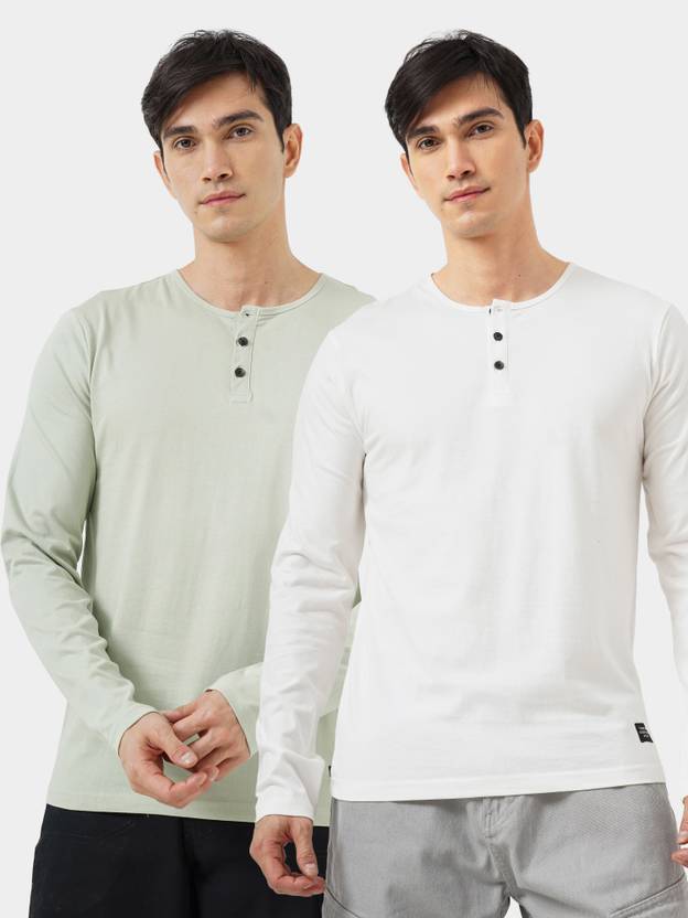 GENOA Pack of 2 Men Solid Henley Neck Pure Cotton Multicolor T-Shirt
