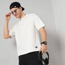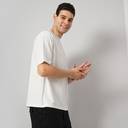GENOA Oversized Men Solid Round Neck Pure Cotton White T-Shirt