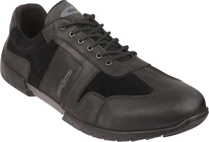 Big Size Regular Width Nubuck Leather Comfortable Black Sneaker For Men