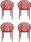 Genuinetoys Plastic Round Web chair | Garden Chair| Comfortable for relaxing| Plastic Outdoor Chair (Red, Set of 4, Pre-assembled)
