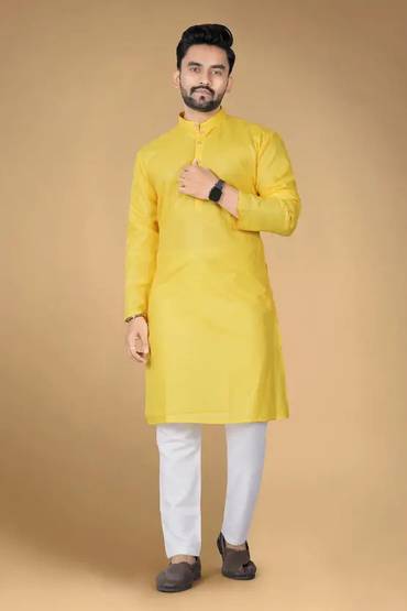 Men Cotton Blend Kurta Pyjama Set