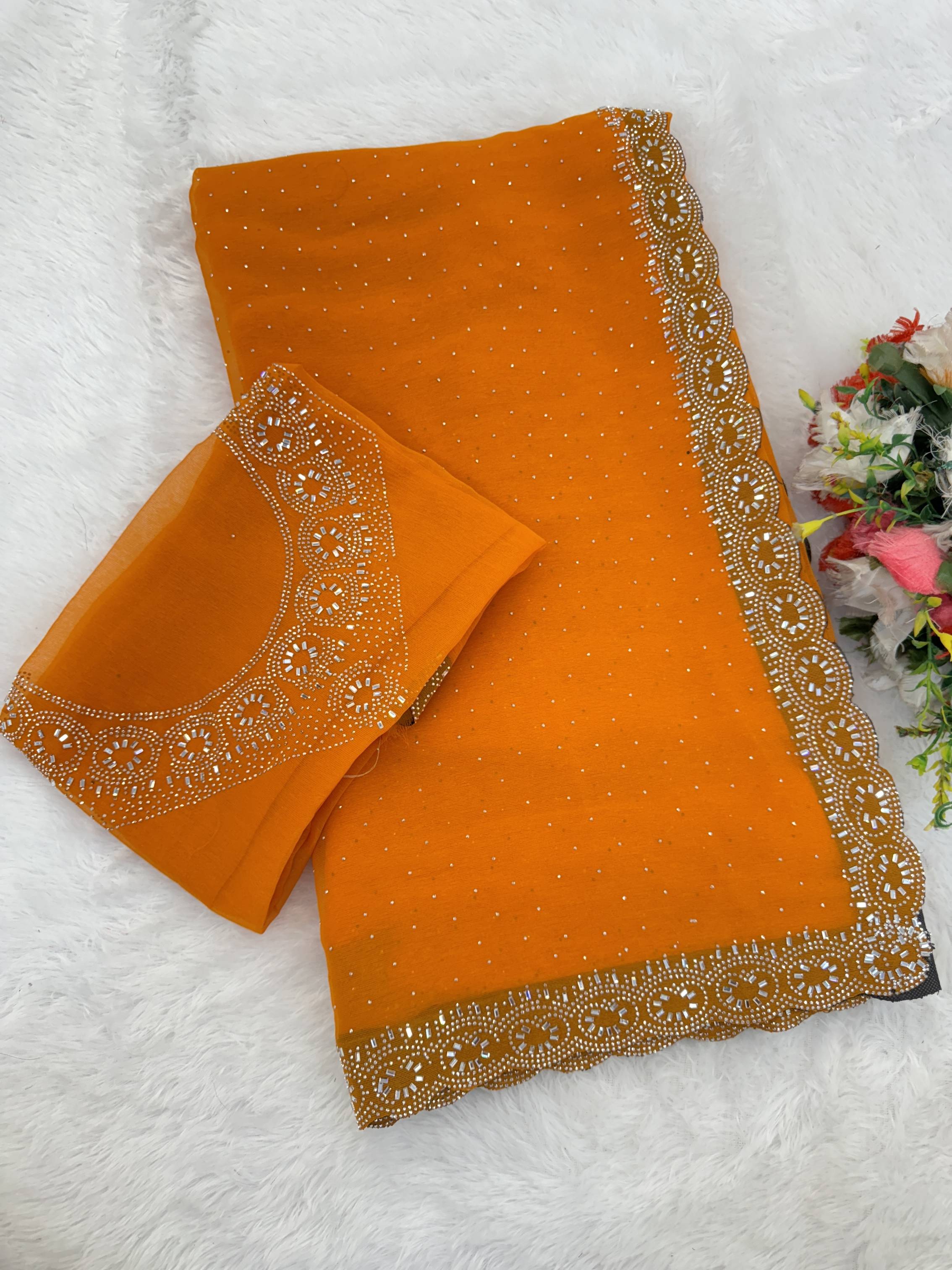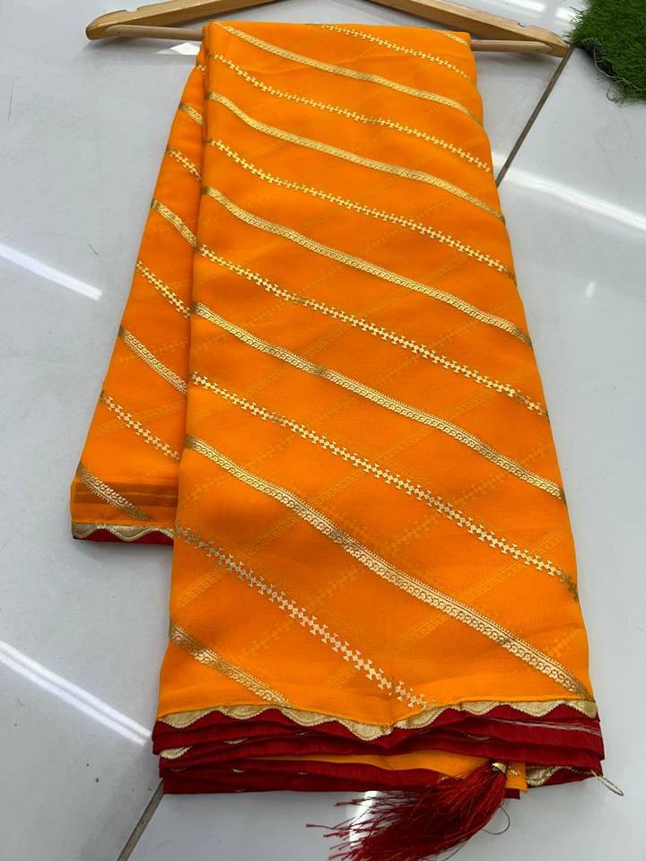 BEAUTIFUL GEORGETTE FOIL PRINTED LEHERIA SAREE WITH BLOUSE AND LACE.