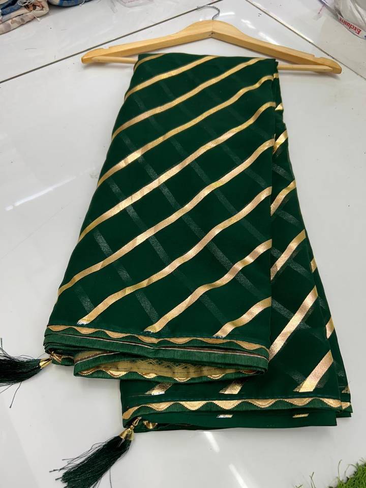 georgette Striped Leheria Georgette Saree (Dark Green)