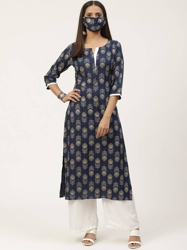 GERUA Women Printed Straight Kurta (Blue)