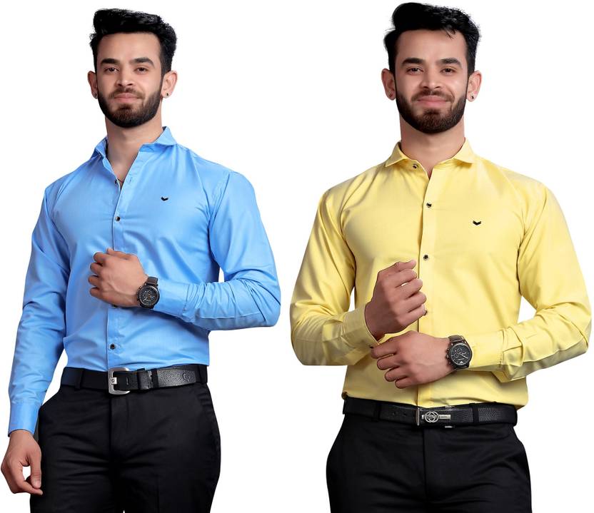 GETCHI Men Regular Fit Solid Spread Collar Formal Shirt (Pack of 2)