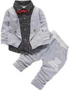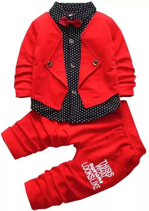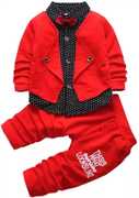 We Provide Style your child with trendy Blazer Style Shirt and Pant Set that instantly makes a style statement! The attractive red bow contrasts well with the full set making it ideal to be worn on those family casual outings or even a birthday party! As it is made with comfortable and stretchable fabric, be sure that your kid will love this!