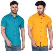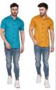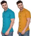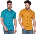 Lawful Casual Men Solid Casual Gold, Light Green Shirt (Pack of 2)
