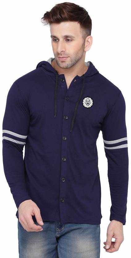 GEUM Men Regular Fit Solid Hood Collar Casual Shirt